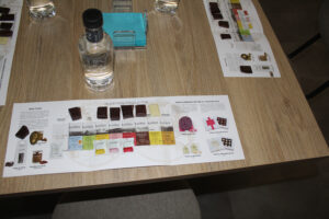 Durante la cata, se degustaron siete variedades de chocolates de origen procedentes de países como Perú, Filipinas, Madagascar, India y Uganda, además de propuestas especiales como un chocolate blanco con sal de Añana y limón, habas de cacao y una trufa de vino tinto. Una experiencia sensorial que permitió descubrir la riqueza y diversidad del cacao desde una perspectiva artesanal.