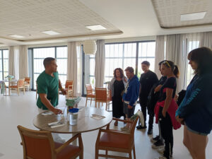 J贸venes del programa Formaci贸n y Empleo para J贸venes realizaron el pasado 30 de julio una visita al Centro Residencial Los Olivos de GerontoRioja. Les recibi贸 Ra煤l, director del centro, y Nuria, jefa del equipo de auxiliares. Durante el recorrido, pudieron conocer las distintas instalaciones de la residencia, incluyendo las zonas comunes, espacios para actividades, comedor, cocina, habitaciones, entre otras. Asimismo, explicaron los diferentes perfiles profesionales que trabajan en el centro y el proceso para acceder a esos puestos.
