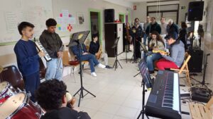 El ensayo de la banda de j贸venes de Fundaci贸n Pioneros, Mix-Es Band, del pasado 11 de enero se vio interrumpido por una visita muy especial. Varios representantes del Colegio de Economistas de La Rioja fueron hasta el local de ensayo para conocer personalmente al grupo de m煤sica de Pioneros.
